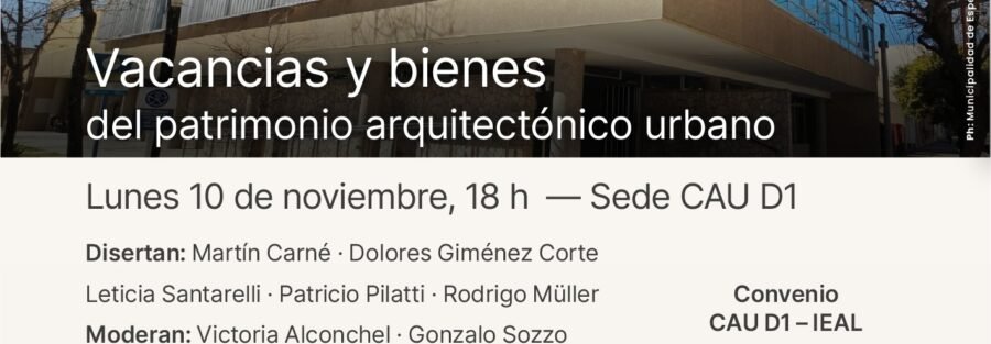 El IEA Litoral invita al conversatorio “Vacancia y bienes del patrimonio arquitectónico urbano”, del ciclo “Laboratorio de debates públicos urbanos – Bienes comunes”, que se realizará el lunes 10 de noviembre de 18 a 20 hs en el CAU D1 (San Martín 1754, Santa Fe).