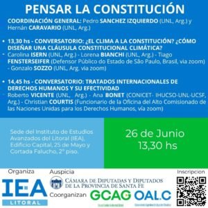 El próximo jueves 26 de junio, se realizará el segundo encuentro del Ciclo “Pensar La Constitución”, a partir de las 13.30 hs.